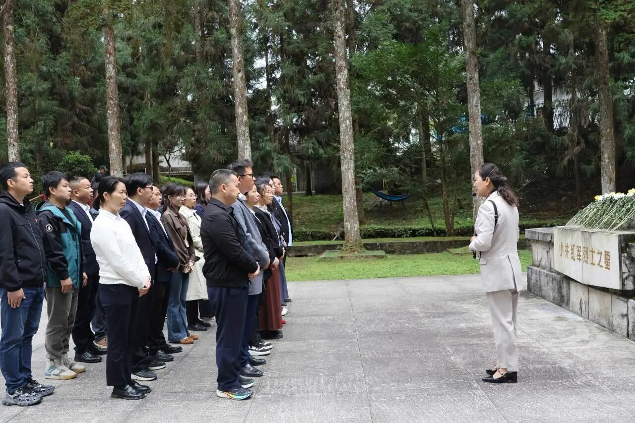 首站黄洋界,昔日战壕依旧,“黄洋界上炮声隆”的壮烈犹在耳畔。全体党员聆听以少胜多的战斗传奇,重温那段硝烟弥漫的峥嵘岁月,感受红军依靠群众、敢于斗争的精神力量。