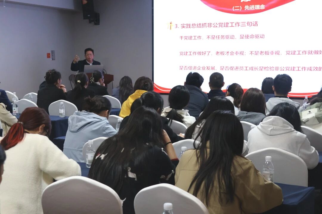 学习教育期间,杨峥嵘副书记以《如何当好新兴领域一名党支部书记》为题讲授专题党课,系统阐释了两新党建的基本概念与时代内涵,并结合湘江新区实践案例,就推动党建与业务深度融合提出创新思路。他强调,一要锤炼对党忠诚的定力,做政治上的“明白人”;二要练就堪当大任的实力,做党务上的“内行人”;三要苦练为民服务的能力,做讲奉献的“火车头”;四要强化党纪意识的威力,做守底线的“新标杆”。