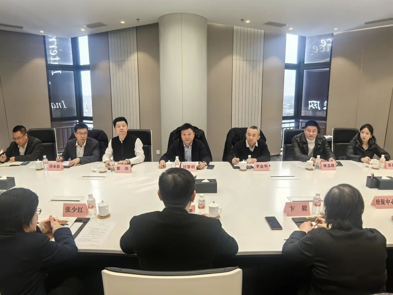 会议期间,郭忠孝书记专程率沈阳经开区、中德园管委会副主任张少红,沈阳市铁西区政协副主席卞毅,沈阳经开区投促中心主任卞松林,中德园产业发展部部长齐晓波,中德开集团党委书记、董事长刘巍,以及园区相关领导会见了由湖南九九智能环保股份有限公司牵头组建,国家碳计量中心(福建)下属企业福建武夷碳产业投资有限公司、众城润信能源(北京)有限公司、中铁建二十四局等企业参与的零碳园区建设团队,就充分参与中德园零碳园区建设展开交流。