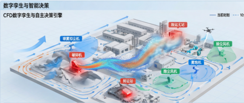 在决策层,装备内置了工业级的求解器引擎。通过CFD仿真与数字孪生技术,系统可以在虚拟空间中秒级模拟未来几分钟甚至几小时的污染扩散趋势,并对不同治理策略的效果进行预演推演。基于强化学习的自适应闭环控制算法,系统会自主生成最优治理策略——就像一位经验丰富的工程师,提前判断、主动干预,而非被动等待报警。