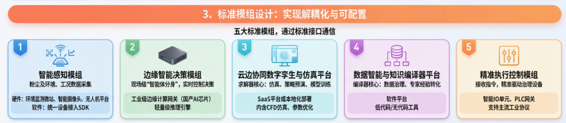 整套装备被拆分为五大标准模组:智能感知模组、边缘智能决策模组、云边协同数字孪生与仿真平台、数据智能与知识编译器平台,以及精准执行控制模组。每个模组通过标准接口通信,既可以整体交付,也可以根据客户的实际场景灵活组合。