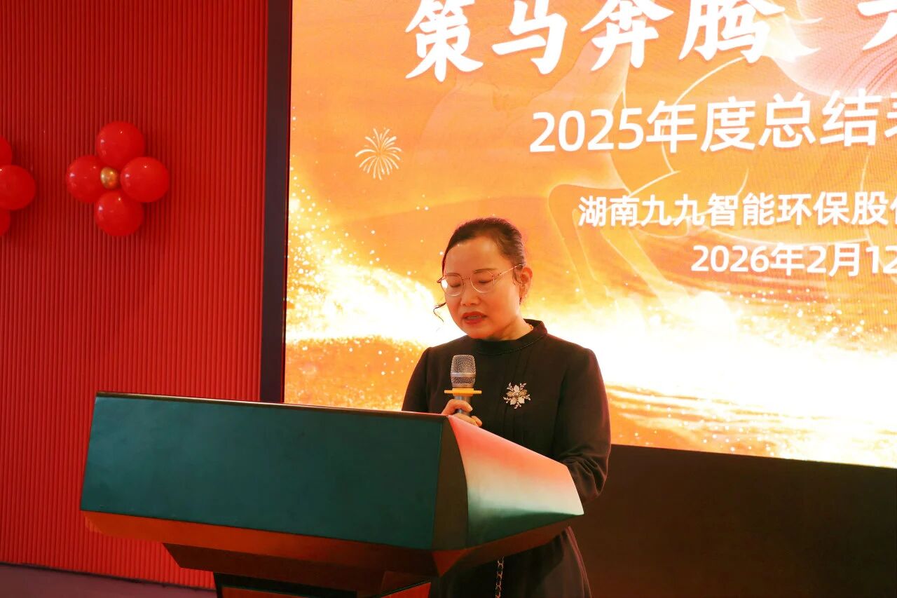 以过往为序章,以奋进迎新春。2026年2月12日,九九智能环保2025年度总结表彰大会在长沙隆重举行。本次大会以“策马奔腾,共赴新程”为主题,总部及宁夏、福建、欧特云等子公司全体员工线上线下欢聚一堂,更有众多仍坚守在项目一线的九九人通过直播远程参与,虽隔屏幕,心意相通。全体九九人共同复盘过去一年的“稳”与“进”,刀刃向内直面短板,并以“精耕细作”为元年号角,全面部署2026年决胜之战。