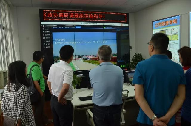调研组首先饶有兴致的参观了九九智能环保自主研发设计的“粉尘综合智能治理平台”。