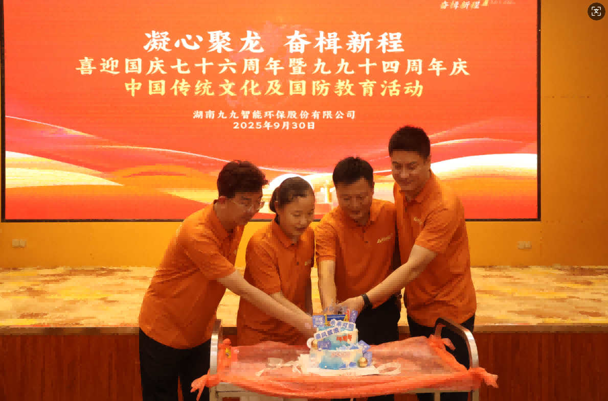 活动在温馨热烈的氛围中圆满落下帷幕。全体同仁欢聚一堂,畅谈活动中的精彩瞬间与深刻感悟,现场洋溢着团结奋进的浓厚氛围。在这温馨时刻,公司管理层共同切开了象征九九智能环保十四周年历程的生日蛋糕。这个充满仪式感的环节,承载着全体同仁对公司未来的美好期许,为本次活动画上了圆满的句号。